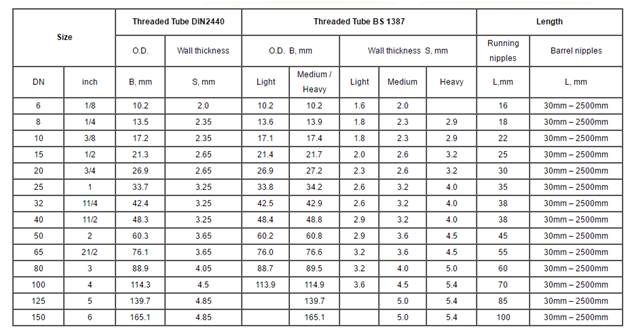 Material: for running nipples,seamless or welded steel tubes according to DIN2441.